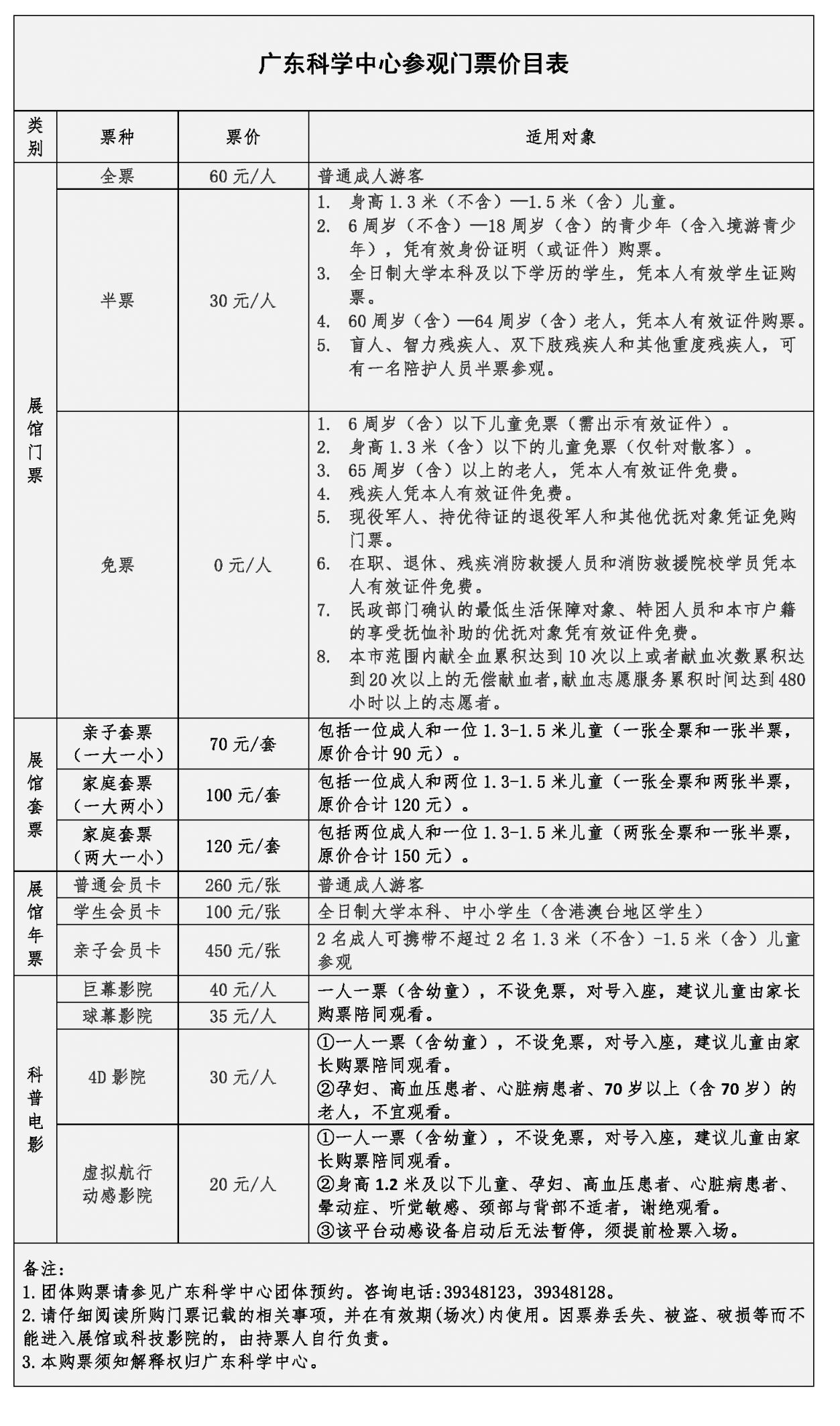 此外,广东科学中心还可能提供团体票、优惠票等,具体价格和优惠政策请参考官方公告。