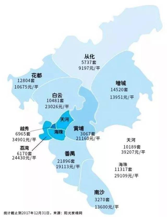 越秀区面积33.8k,荔湾区面积59.1k,海珠区面积90.4k,天河区面积96.33k,白云区面积795.79k,黄埔区面积484.17k,番禺区面积786.15k,花都区面积970.04k,南沙区面积527.65k,增城区面积1616k,从化区面积1974.5k。