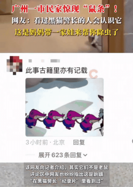 “解释不清了!”广州一女子在家休息时,突然听到桌子下有动静,她小心翼翼走过去,竟然发现了“鼠条”!一只大老鼠带着一群小老鼠,在房间里窜来窜去,她将这一幕拍下,发网上求解这是什么情况?结果网友却说:看过黑猫警长的人都认识它!