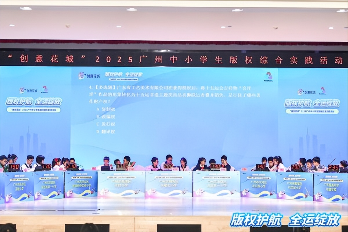 童趣答题构建版权教育生动场景当天下午,“创意花城·儿童答”2025广州小学生版权知识挑战赛火热开赛。来自广州各区的11支小学生代表队现场比拼版权知识储备,将严肃的版权教育转化为充满趣味的互动体验。赛事紧扣版权、全运及体育赛事主题,一道道题目既是对版权知识的考查,更是对日常行为的引导。